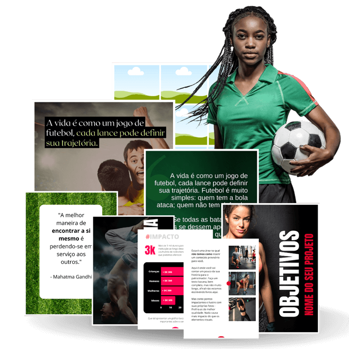 Nós criamos e montamos a apresentação profissional do seu projeto! Entregamos tudo pronto para você enviar aos patrocinadores.